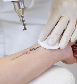 During a tattoo removal procedure, laser light is applied to the tattooed area of the skin. The light is selectively absorbed by the tattoo ink particles, leaving the surrounding skin tissue and chromophores unharmed. The tattoo ink particles absorb the laser energy, heat up, and shatter into smaller ink particles. You should first schedule a consultation with a trained professional who can evaluate your tattoo and advise you on the process. The number of treatments you will need will depend on the age, size, and color(s) of your tattoo. The color of your skin, as well as how deep the tattoo pigment goes, will also affect the removal technique.